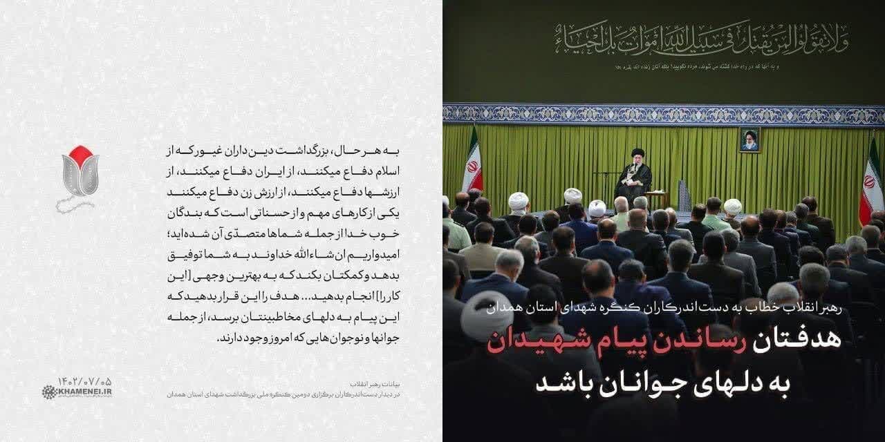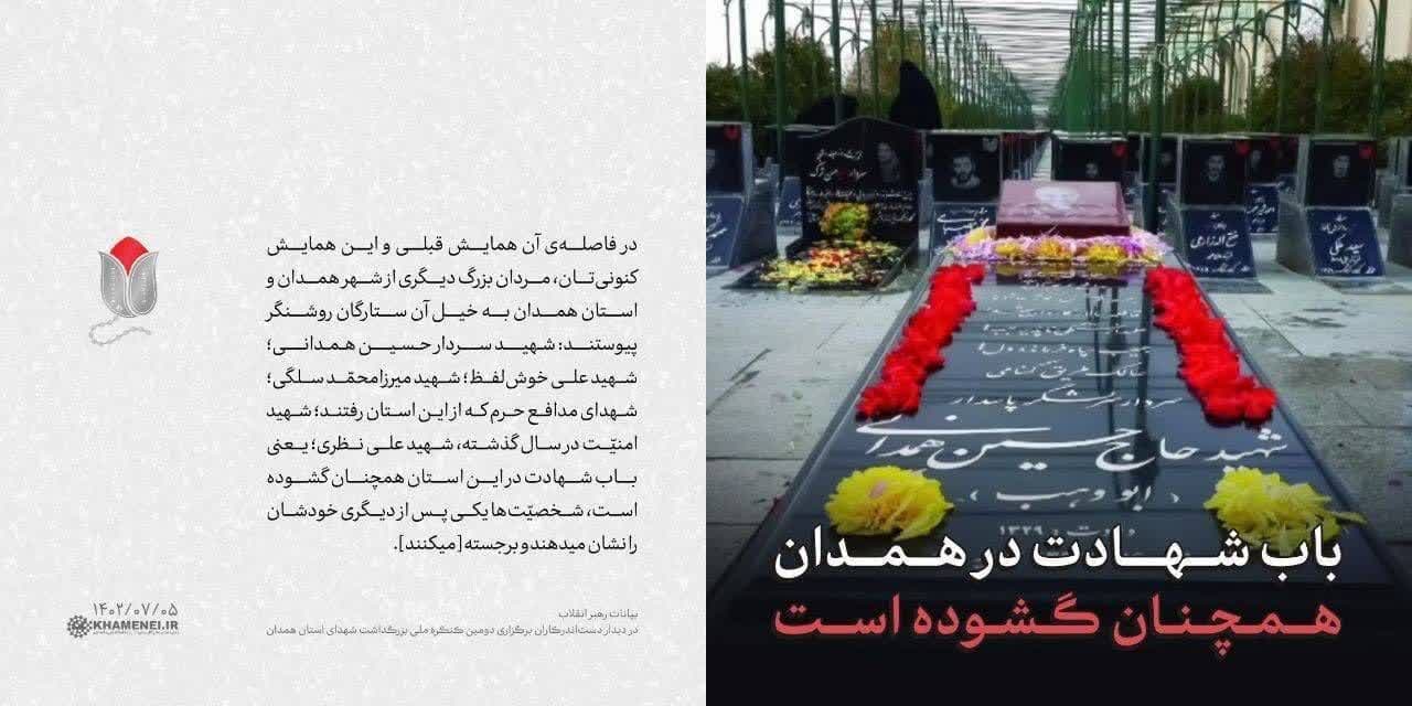 ✏️ رهبر انقلاب: در فاصلهی آن همایش قبلی و این همایش کنونیتان، مردان بزرگ دیگری از شهر همدان و استان همدان به خیل آن ستارگان روشنگر پیوستند: شهید سردار حسین...