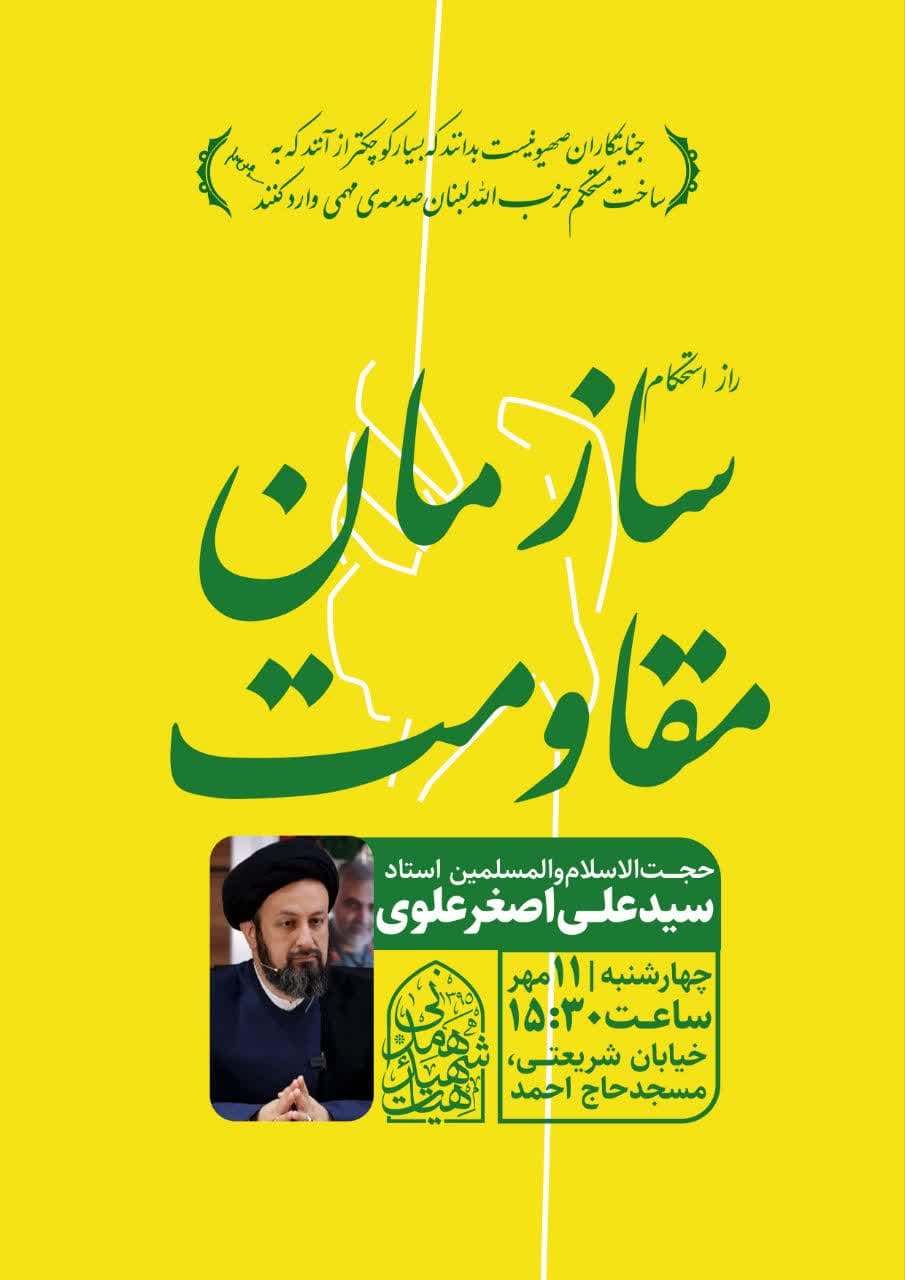 🔺با حضور حجتالاسلاموالمسلمین دکتر سید علیاصغر علوی ▫️زمان: چهارشنبه ۱۱ مهر؛ ساعت ۱۵:۳۰ ▫️مکان: همدان، خیابان شریعتی، مسجد حاج احمد