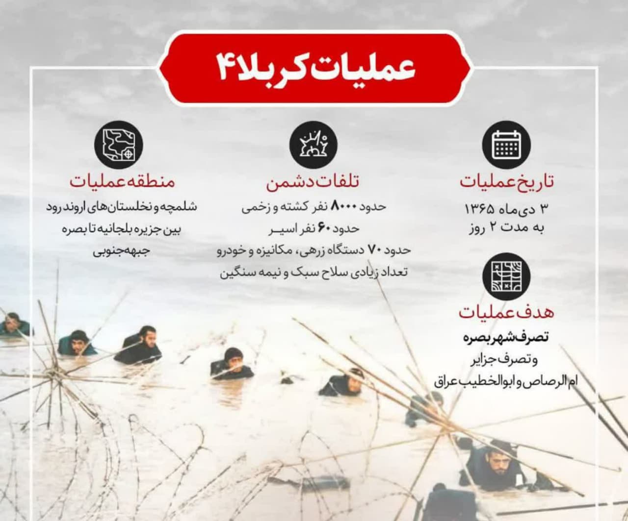 عملیات کربلای ۴ عملیات نظامی تهاجمی نیروهای مسلح ایران در خلال جنگ ایران و عراق بود، که در دیماه ۱۳۶۵ به فرماندهی سپاه پاسداران انجام شد. این عملیات در تاریخ...