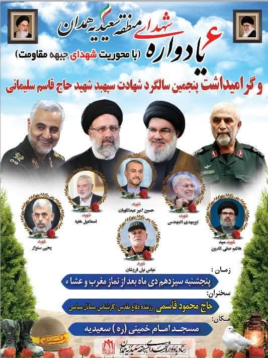 سخنران: حاج محمود قاسمی کارشناس سیاسی و سخنران ویژه کشوری ⏰زمان: پنجشنبه ۱۳ دیماه ۱۴۰۳؛ بعد از نماز مغرب و عشاء 📍مکان: همدان، خیابان سعیدیه، مسجد امام خمینی(ره)