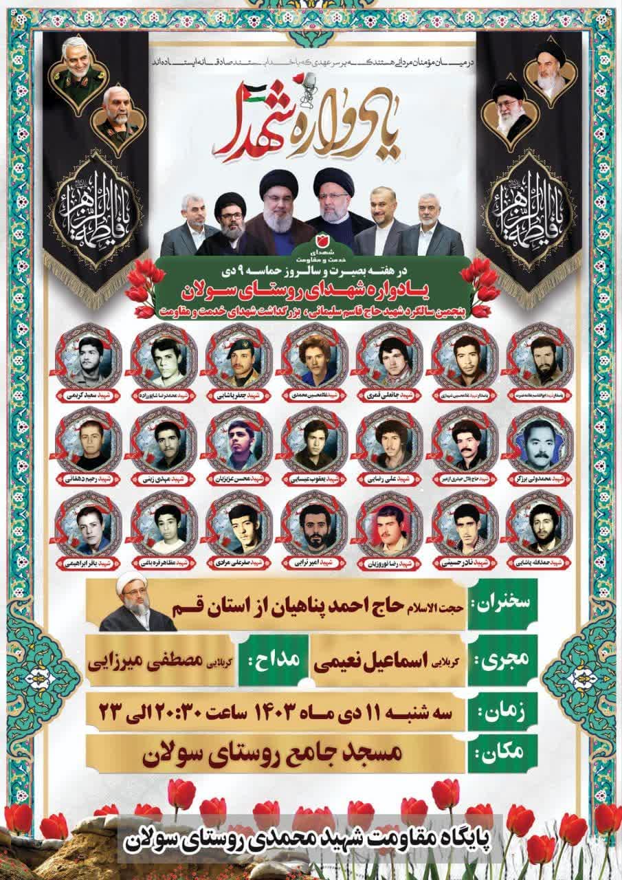 همزمان با هفته بصیرت وسالروز حماسه ۹ دی، پنجمین سالگرد شهادت سردار شهید حاج قاسم سلیمانی و بزرگداشت شهدای خدمت و مقاومت سخنران: حجت الاسلام حاج احمد پناهیان از استان...