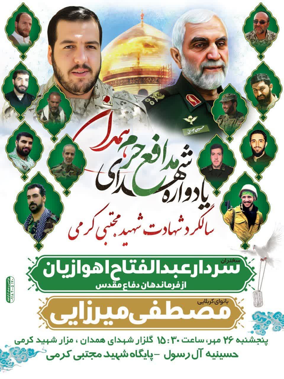 با کلام: حجت الاسلام والمسلمین سیدمجتبی سیدسلیمانی با نفس: حاج مهدی سلحشور کربلایی امیر طلاجوران کربلایی مصطفی میرزائی ▫️زمان: شنبه ۲۱مهرماه۱۴۰۳؛ ساعت ۱۹:۳۰ ▫️مکان: همدان، آستان مقدس امامزاده عبدالله؛ حسینیه...